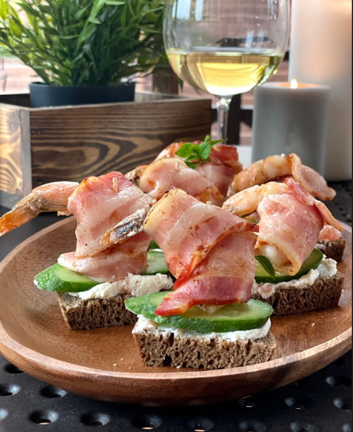 Закуска с креветкой и беконом